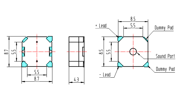 | 4 | 输出音压 (dB) | Min. 85dB,at 2700Hz 50% duty Square Wave 3Vo-p |